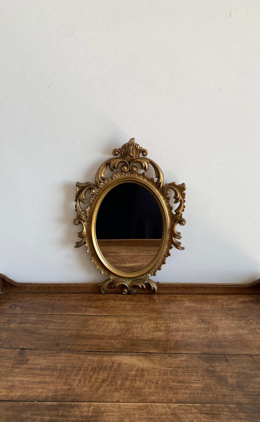 Ravissant miroir vintage de taille moyenne, aux formes dorées de style baroque.