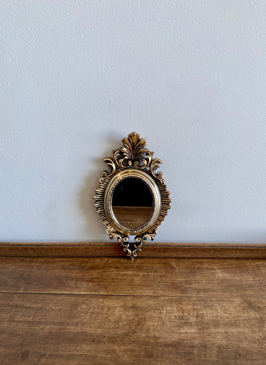 Ravissant petit miroir fantaisie style rococo aux tons dorés et argentés