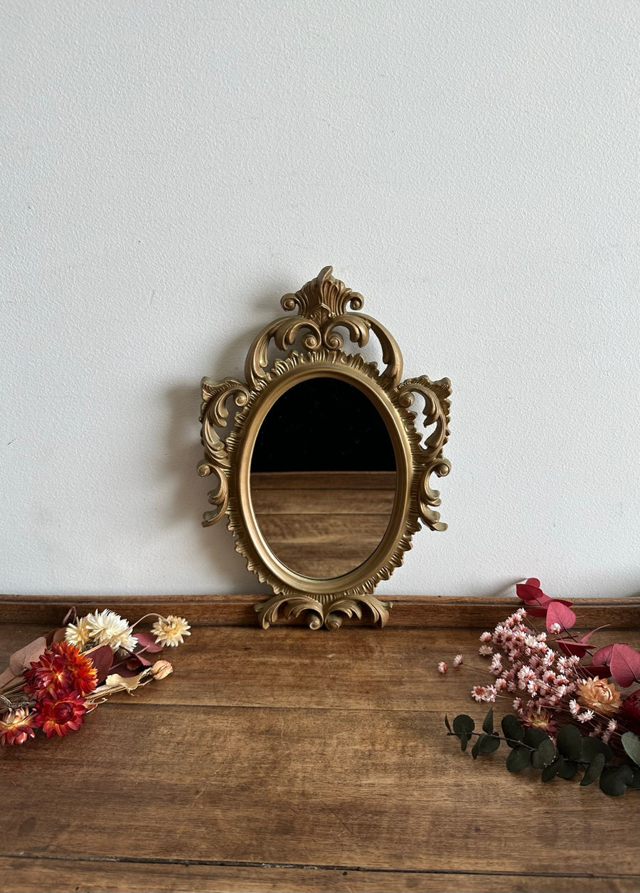 Charmant miroir fantaisie de style baroque. Cadre en plastique doré. Made in Italy. Parfait pour ajouter à une accumulation murale.