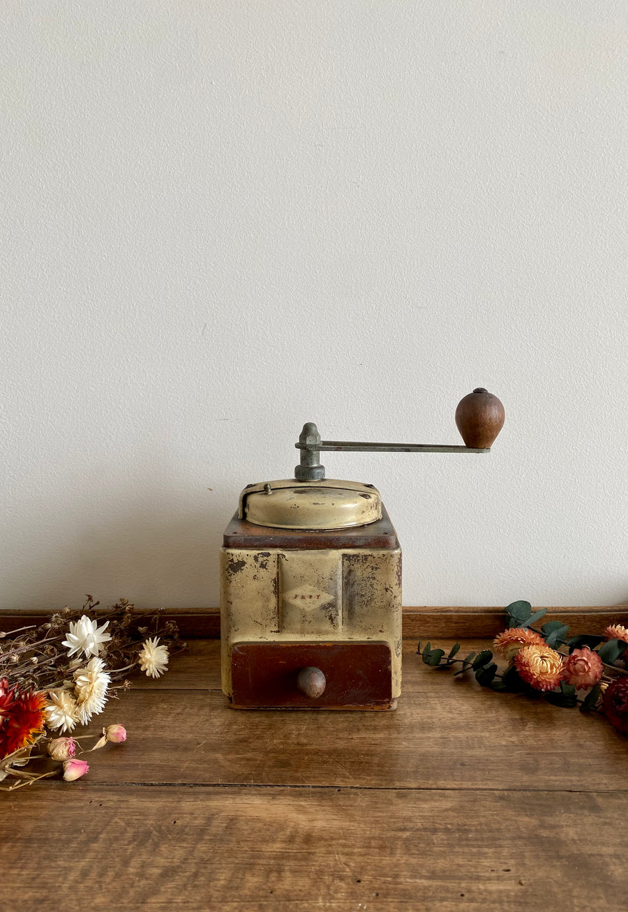 Très beau moulin en bois et métal beige, dans son jus comme on les aime !