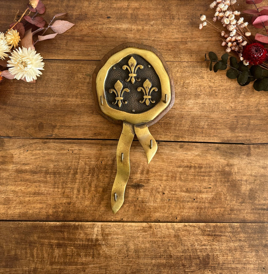 Patère en bronze motifs fleurs de lys format cachet de cire