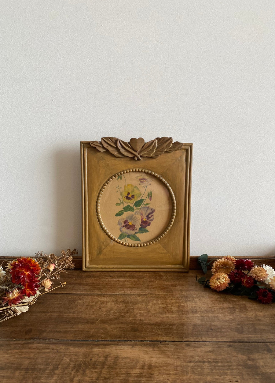 Charmante aquarelle datant de début 1900. Mention spéciale pour son joli cadre en bois peint orné de décorations sculptées.
