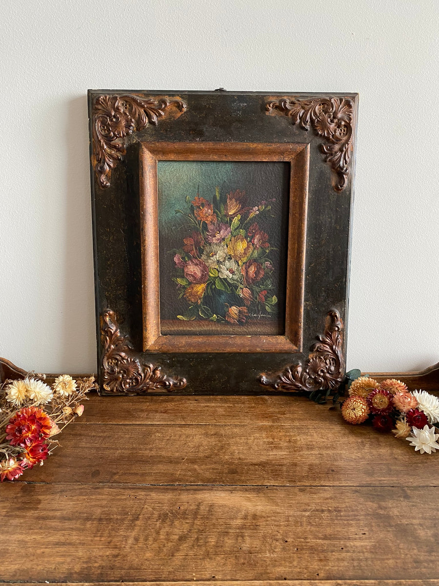 Alerte coup de coeur ! Sublime toile encadrée signée Campanini - Certificat au dos. On adore son cadre travaillé au style baroque et les craquelures sur la toile qui ne lui apportent que plus de charme ! Epoque XXème