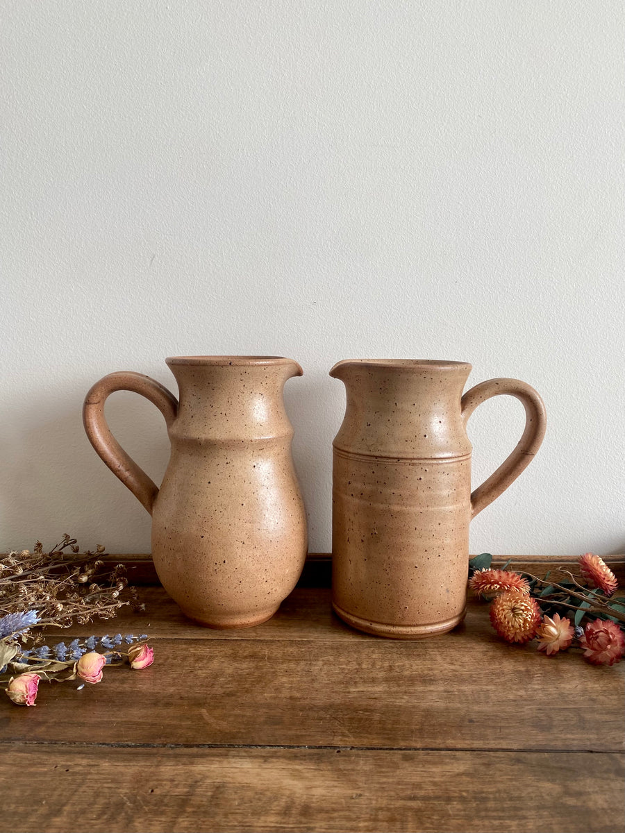 Lot de deux jolis pichets en grès avec anses - peuvent être convertis en vases pour accueillir vos bouquets printaniers.