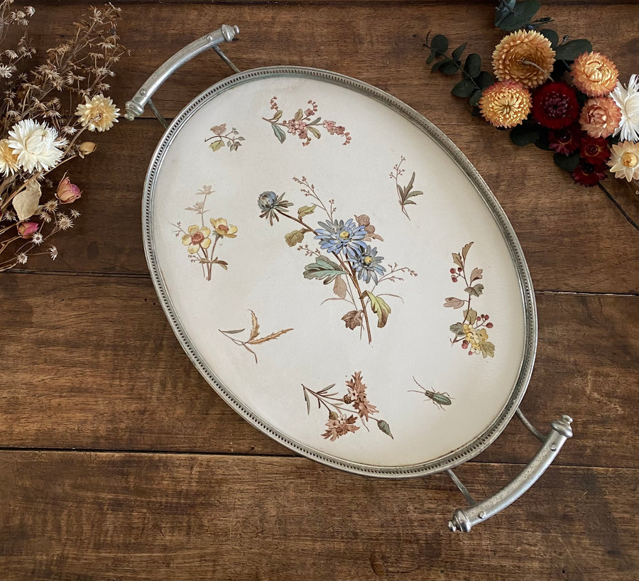 Plateau 1920 en céramique peinte et armature en métal