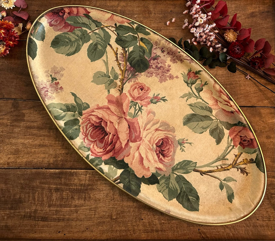 Plateau ovale en résine motifs fleurs made in England