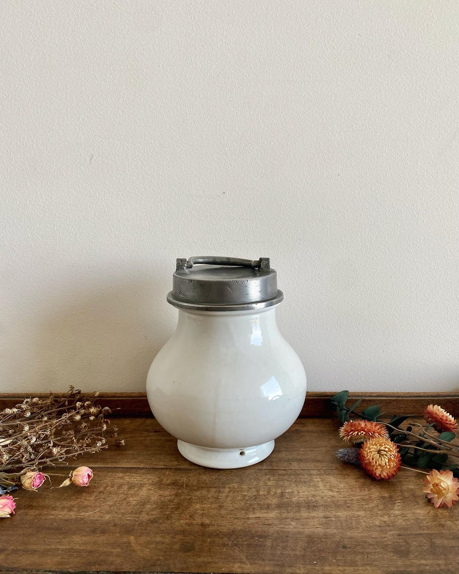 Ce petit pot était autrefois utilisé pour servir des bouillons mijotés aux malades, grâce à son couvercle bien vissé qui empêchait  la vapeur de s’échapper.