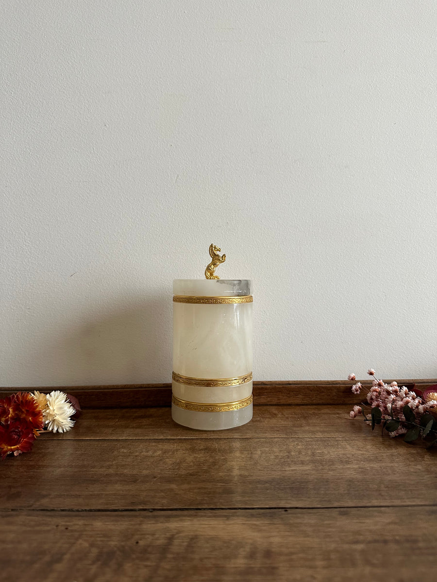 Charmants pots en albâtre cerclés de bronze. Vendus ensemble.