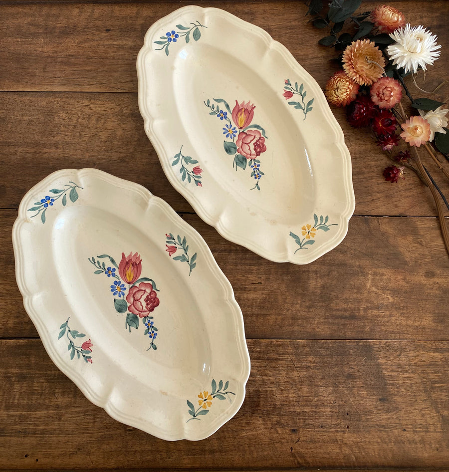 Duo de jolis raviers Digoin Sarreguemines modèle Yann décors florale