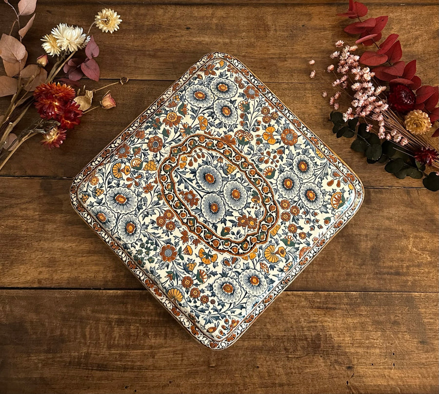 Repose plat GIEN motifs fleuris jaunes bleus et ocre