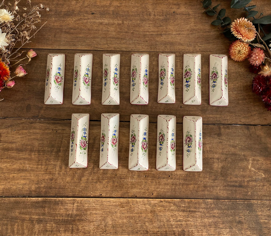 Très bel ensemble de 12 porte-couteaux très anciens - En porcelaine peinte à la main et signés RC 145. Estimation fin XIX, début XX.