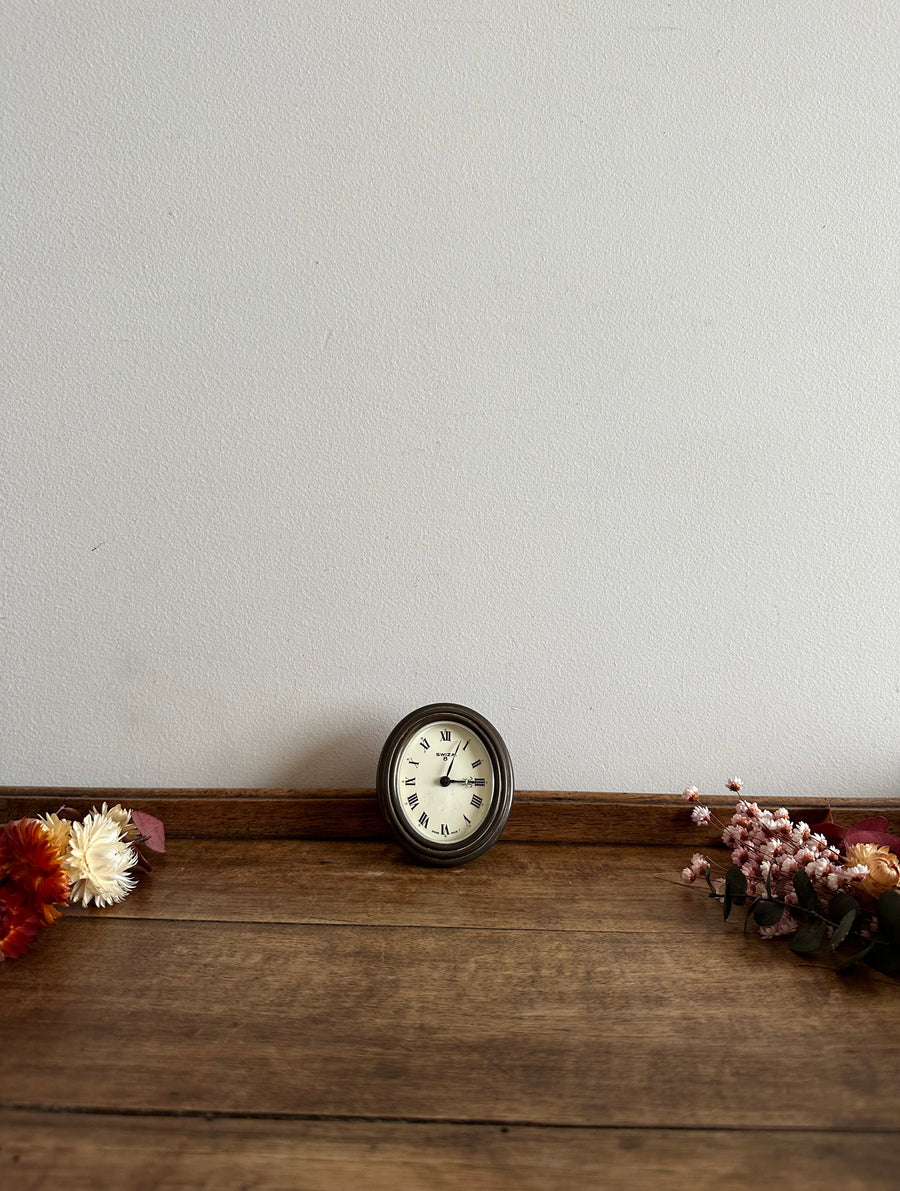 Réveil matin sur pied ovale en laiton