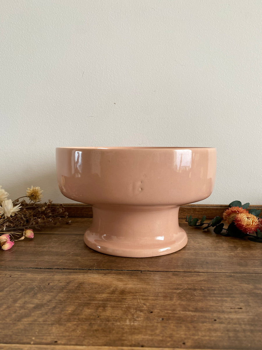 Élégant saladier en faïence couleur rose poudré - il est ancien et présente quelques petites imperfections discrètes visibles sur les photos.