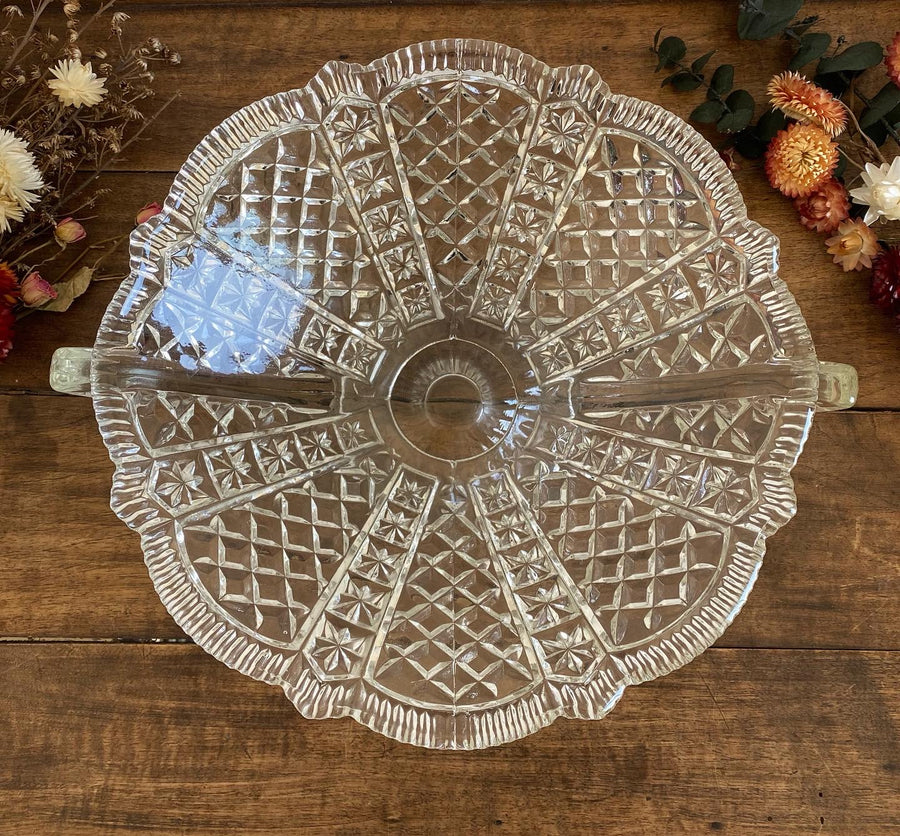 Élégant saladier en verre travaillé doté de deux petites anses.