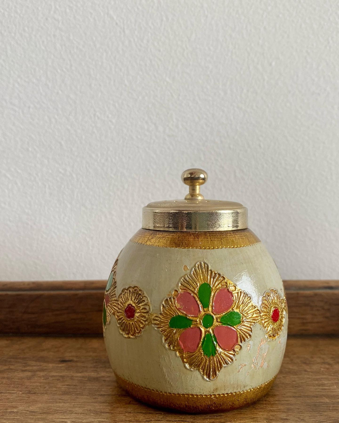 Adorable petite salière imparfaite couleur or et crème avec son armature dorée