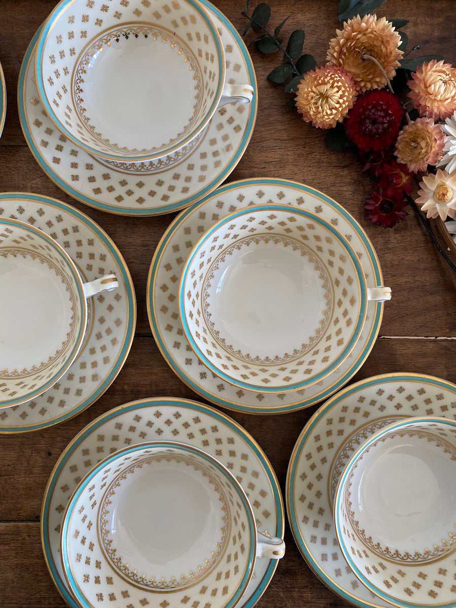 Service à café bordures vertes et petites fleurs en losanges dorées Limoges R&C