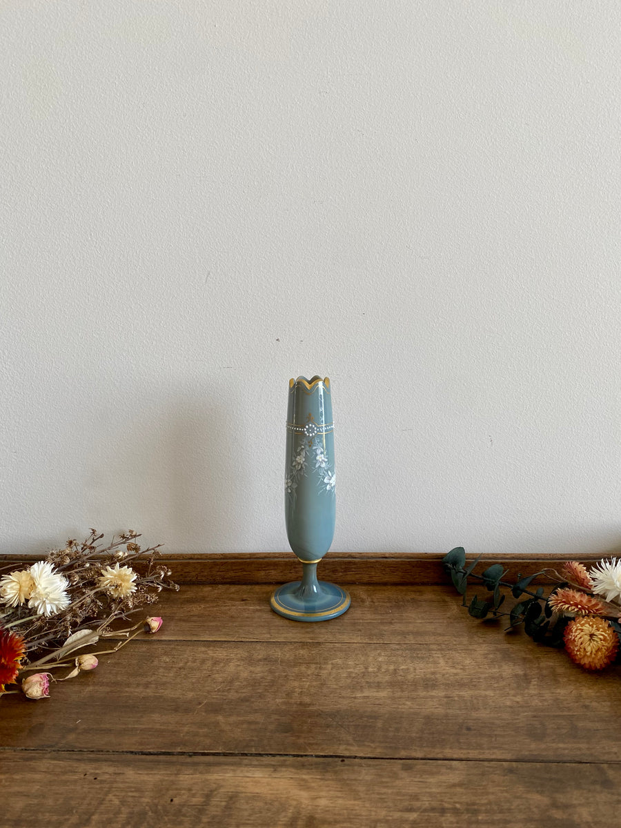Élégant soliflore gris en porcelaine décoré de petites fleurs blanches