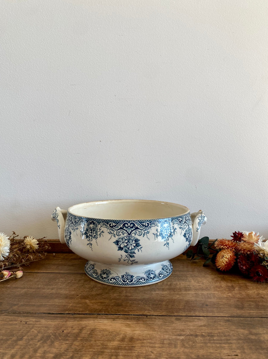 Très beau saladier ancien, en faïence, signé moulin des loups & hamage modèle Printanier. Objet datant fin XIX, début XXème.