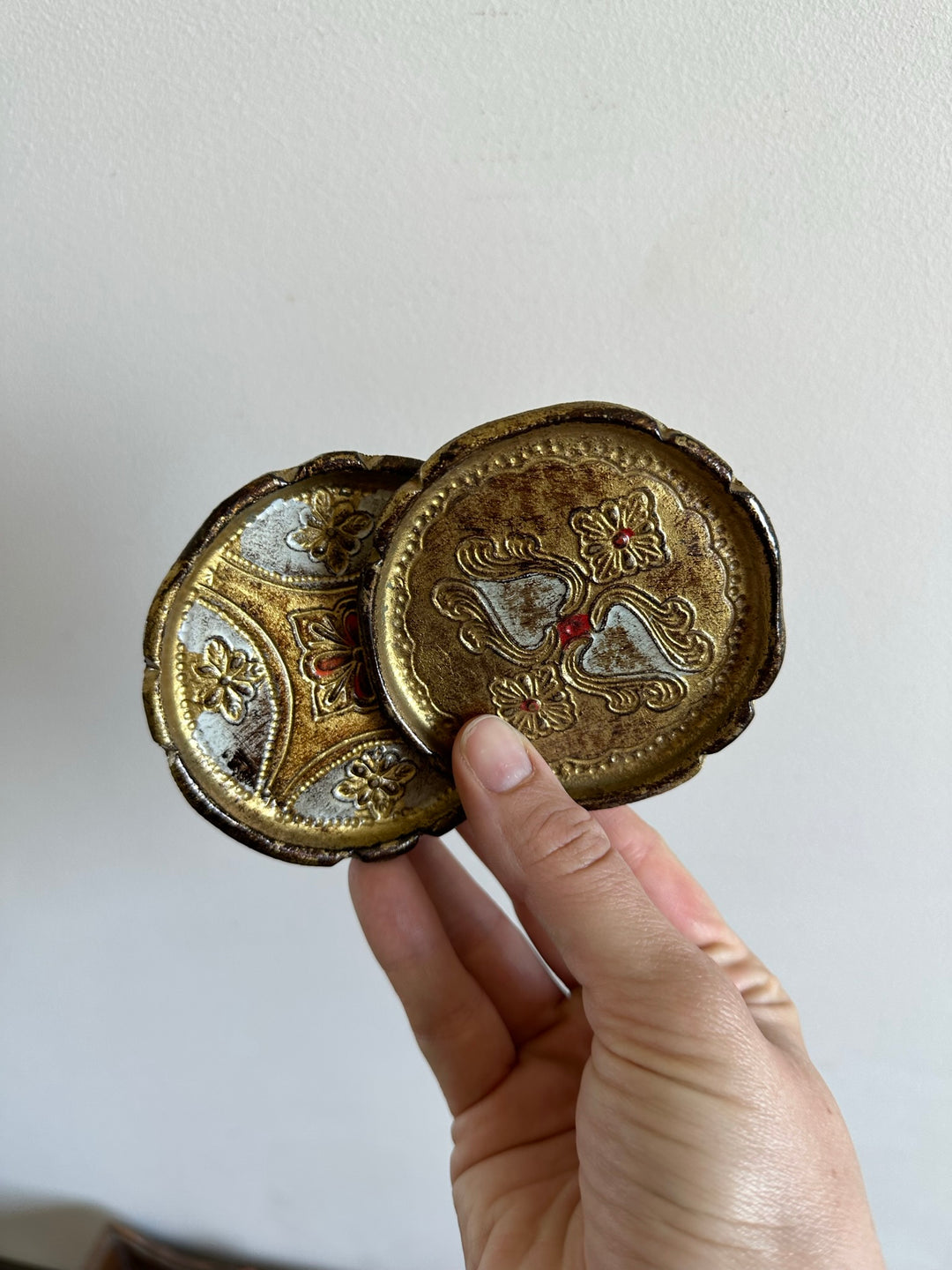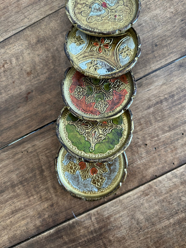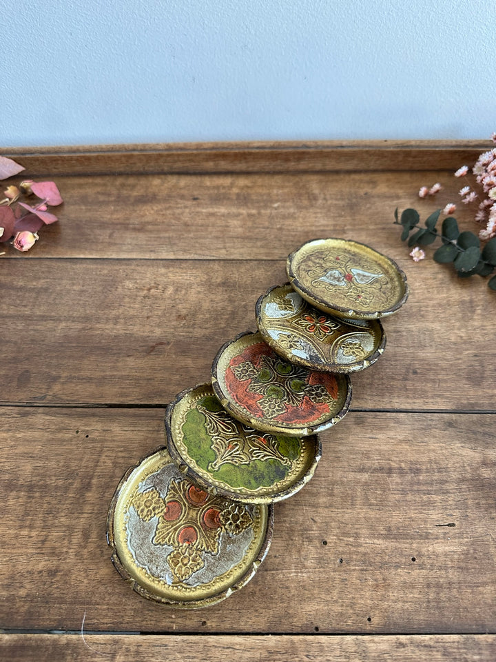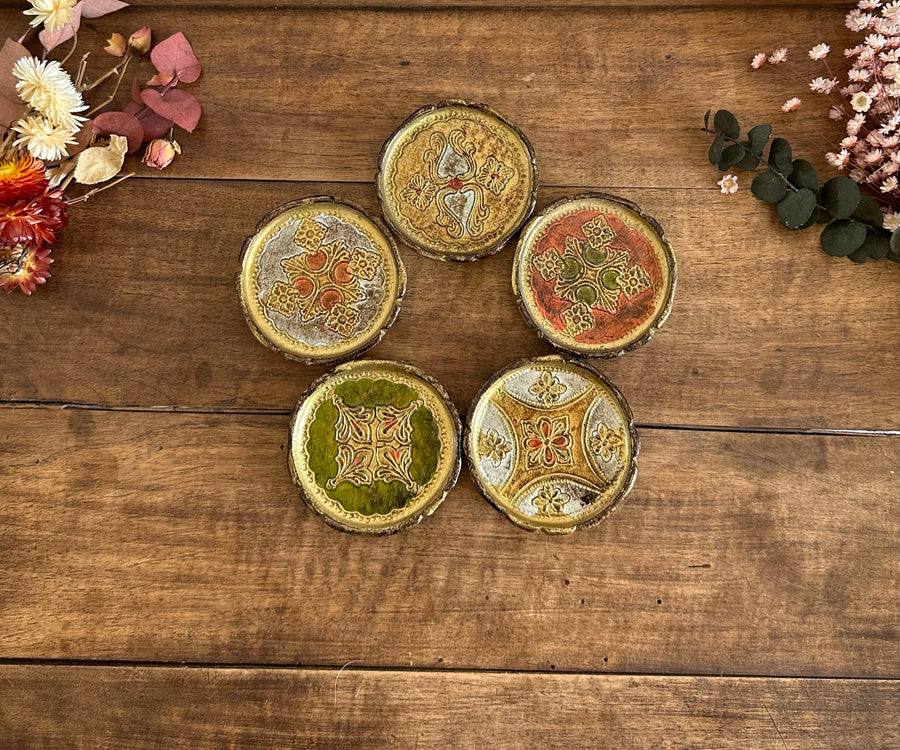 Lot de 5 jolis dessous de verre vintage en bois florentin