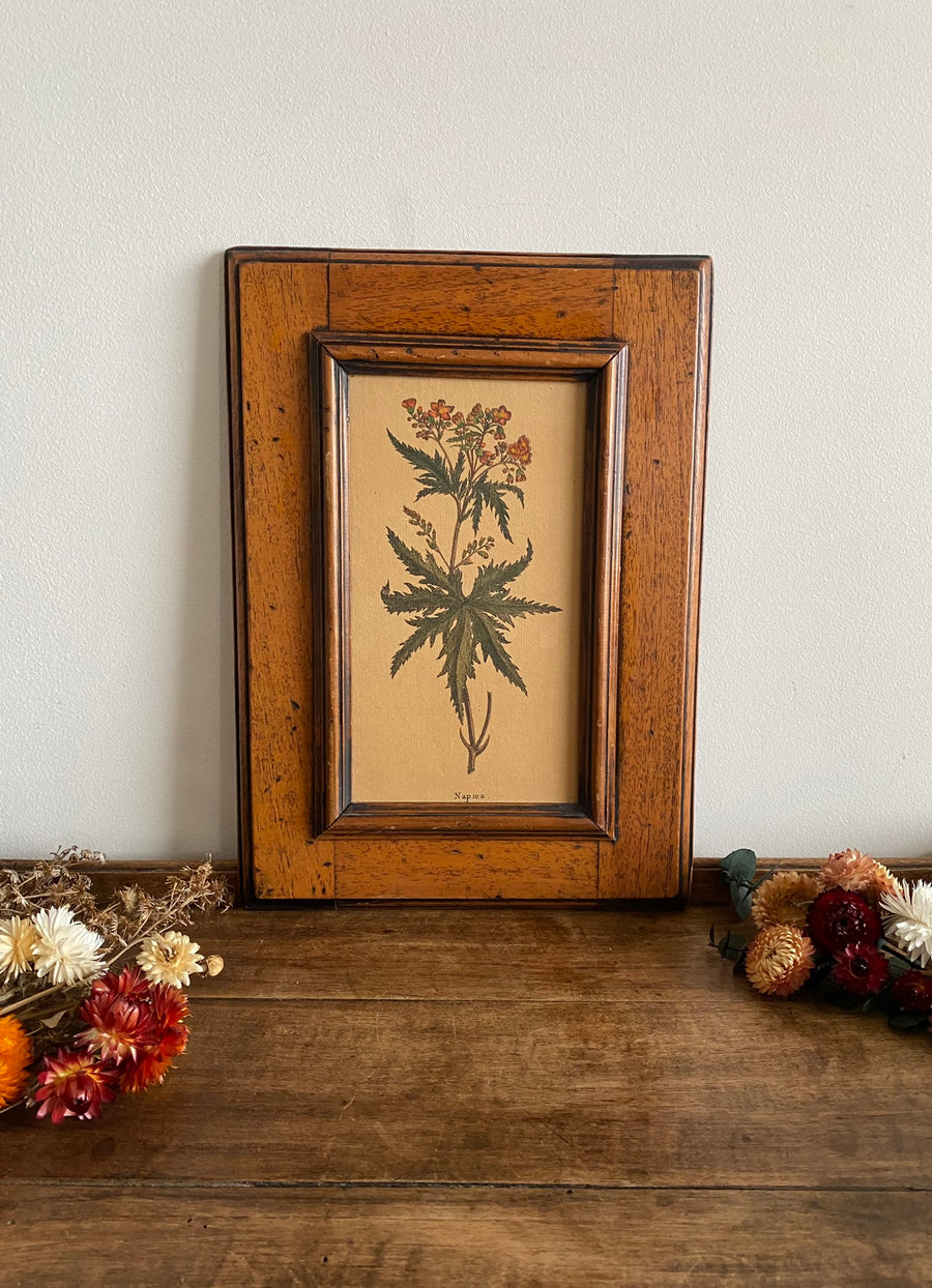 Adorable petite gravure botanique Napoea dans son joli cadre en bois. Estimation années 70.