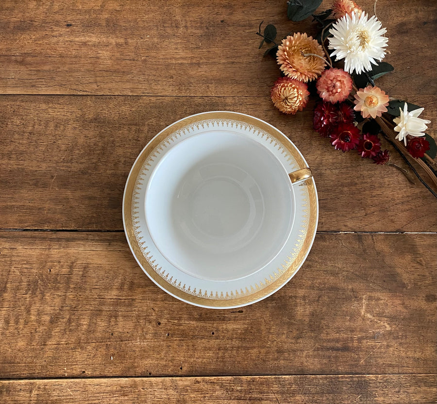Ravissante tasse en porcelaine blanche avec son galon doré. Idéale pour savourer un chocolat chaud.