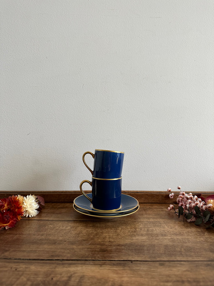 Tasses à café bleu nuit et or Porcelaine Legle Legrand Lebouc Or véritable