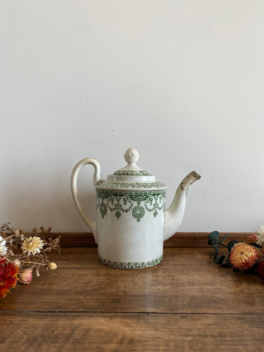 Ravissante théière en porcelaine très ancienne. Objet dans son jus avec ses marques du temps sur le bec. Fera un parfait objet déco ou bien pourra être reconverti en vase ! Modèle Empire