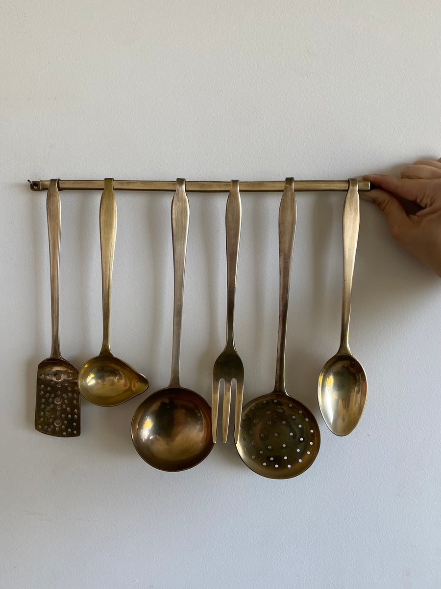 Coup de coeur pour ces jolis ustensiles anciens en laiton à accrocher au mur de votre cuisine !
