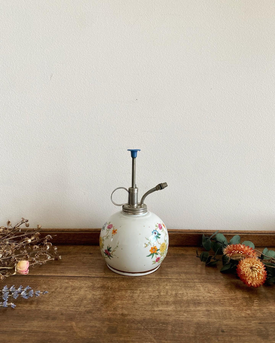 Adorable petit vaporisateur pour plantes en céramique blanche avec ses motifs fleuris.