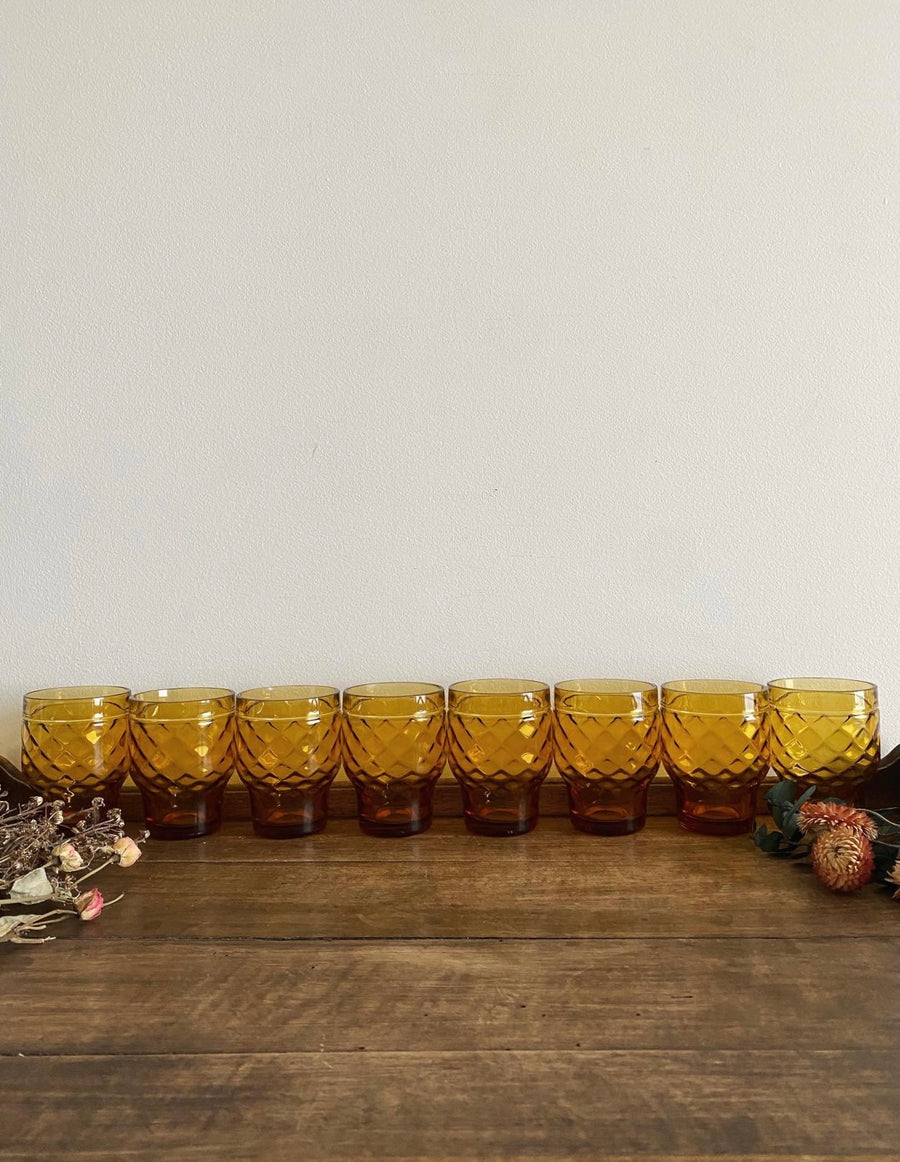 Ensemble de 8 verres Pernod couleur marron ambré années 70.