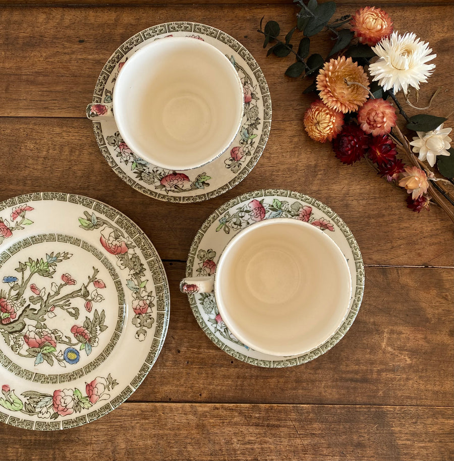 Tasses soucoupes et assiettes à dessert assorties Johnson Bros England Indian Tree
