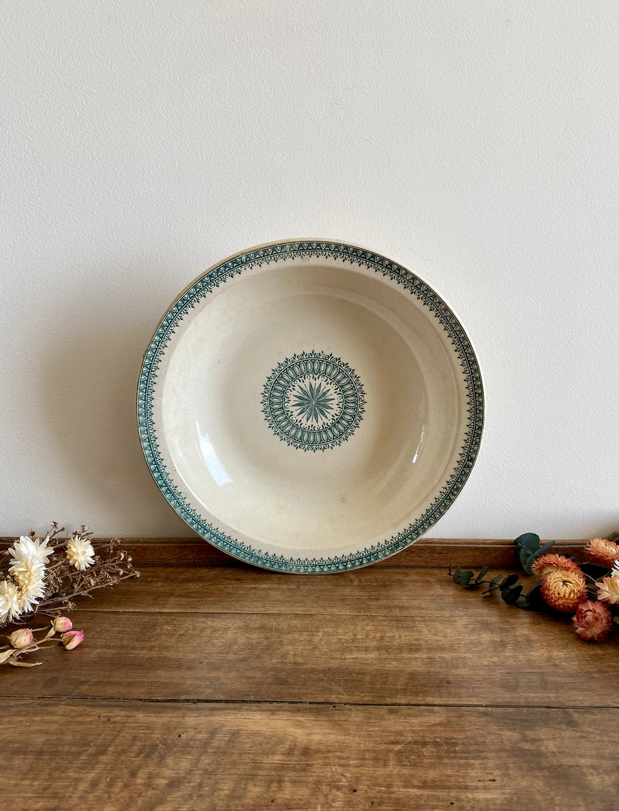 Grand plat creux ancien Terre de Fer Creil et Montereau Collection Anglais.