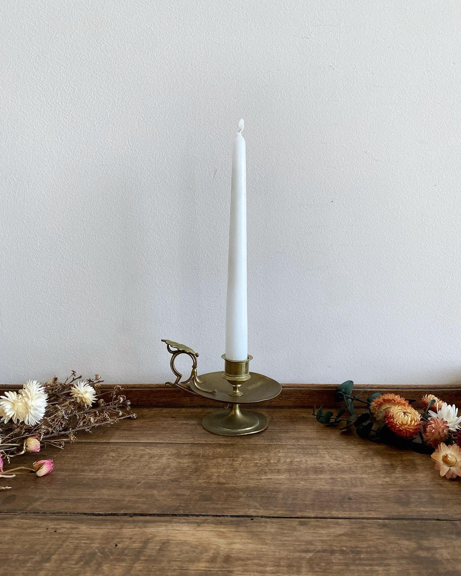 Ravissant petit bougeoir style rat de cave orné d'une jolie feuille de chêne.