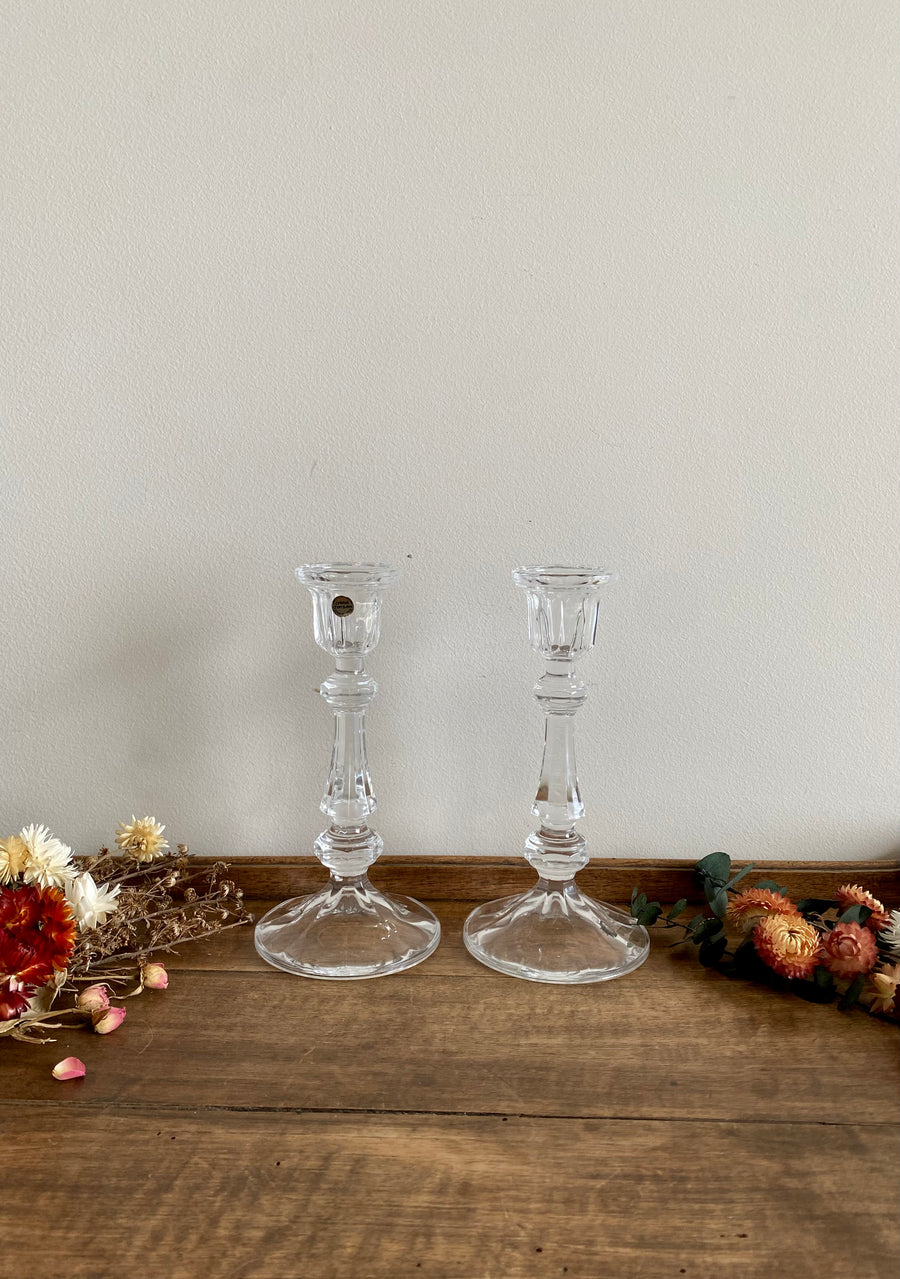 Lot de deux magnifiques bougeoirs en cristal d'Arques