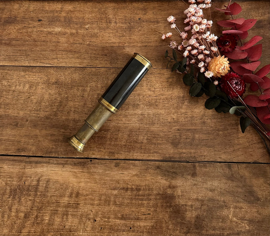 Adorable longue vue petite format en laiton. De jolies traces du temps qui lui ajoutent du charme. Estimation années 1900.