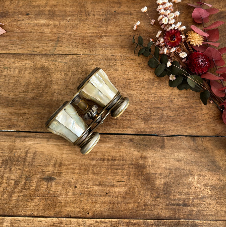 Superbe paire de jumelles en laiton cuivre et nacre. Gravée Lennie Edinburgh. Fabrication Ecossaise. Estimation années 20.