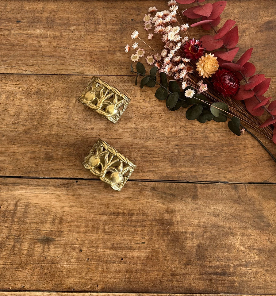 Joli duo de ronds de serviettes en laiton ajouré motifs fruits. Vendus ensemble