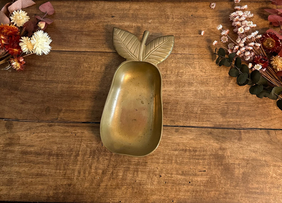 Adorable vide poche en laiton en forme de poire. Parfait pour décorer un meuble ou dans une salle de bain. Estimation années 60