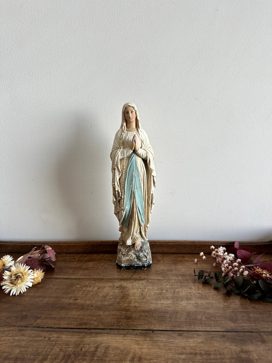 Jolie statuette de la Vierge Marie en plâtre polychrome.