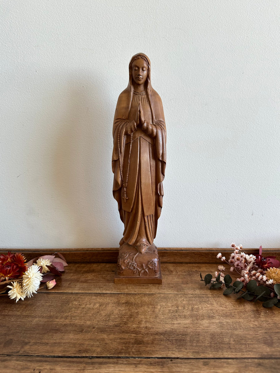 Statuette de la vierge en bois sculptée signée Lucien Pessey (1912-1992)