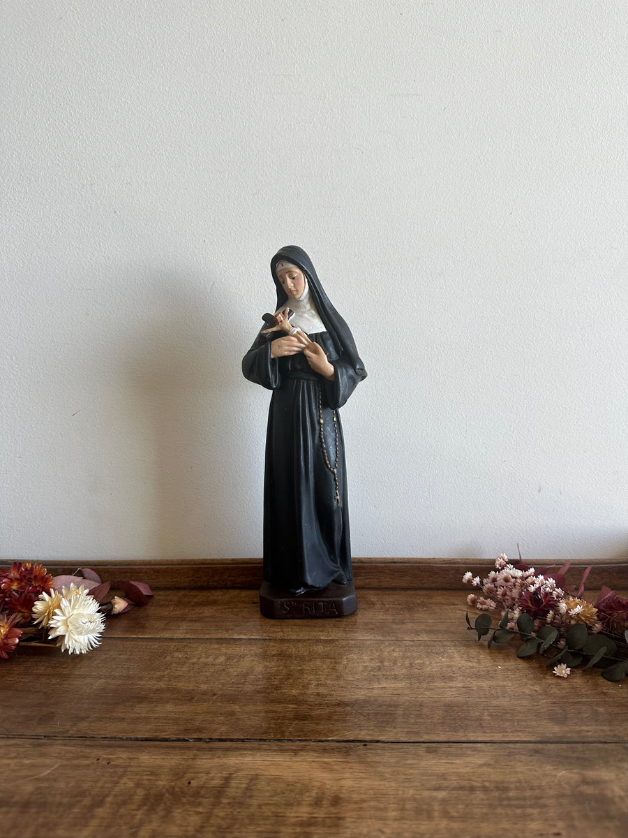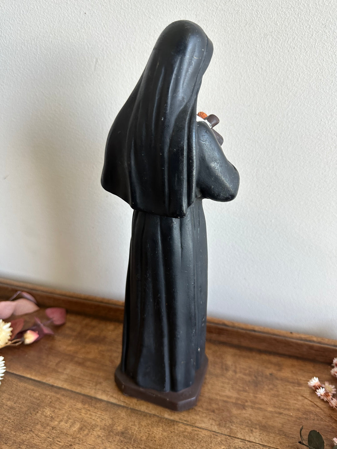 Jolie statuette de Sainte Rita en plâtre. Estimation années 80. On la fête le 22 mai. Béatifiée en 1628
