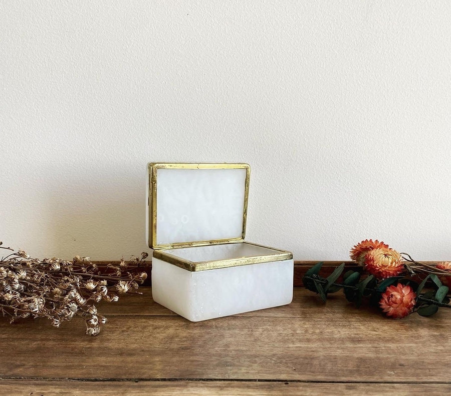 Ravissante boîte à bijoux en pierre blanche avec sa bordure dorée