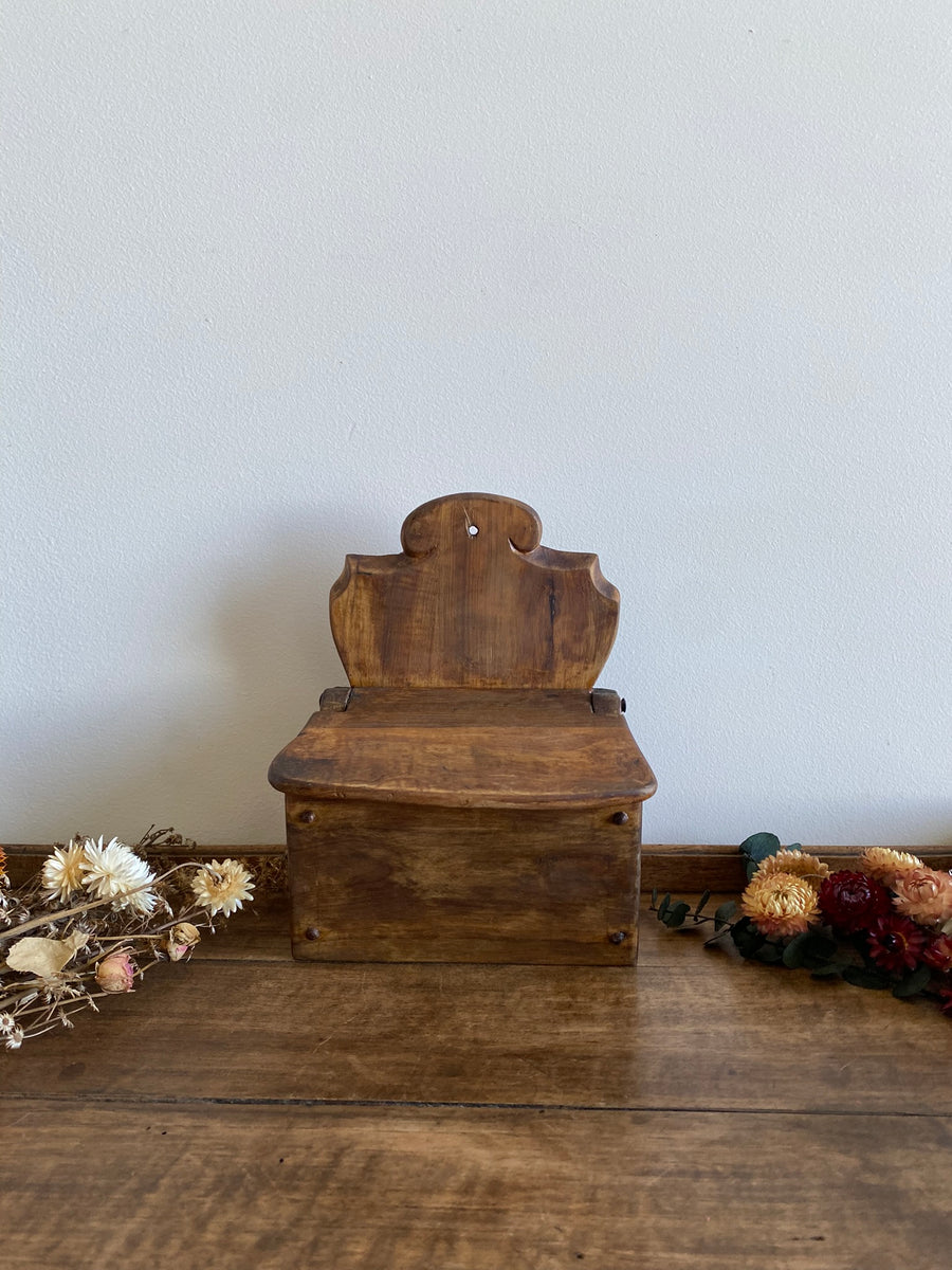 Charmante boîte à sel en bois d'olivier. Estimation années 50-60. Des imperfections et de jolis reflets qui lui donnent tout son charme !