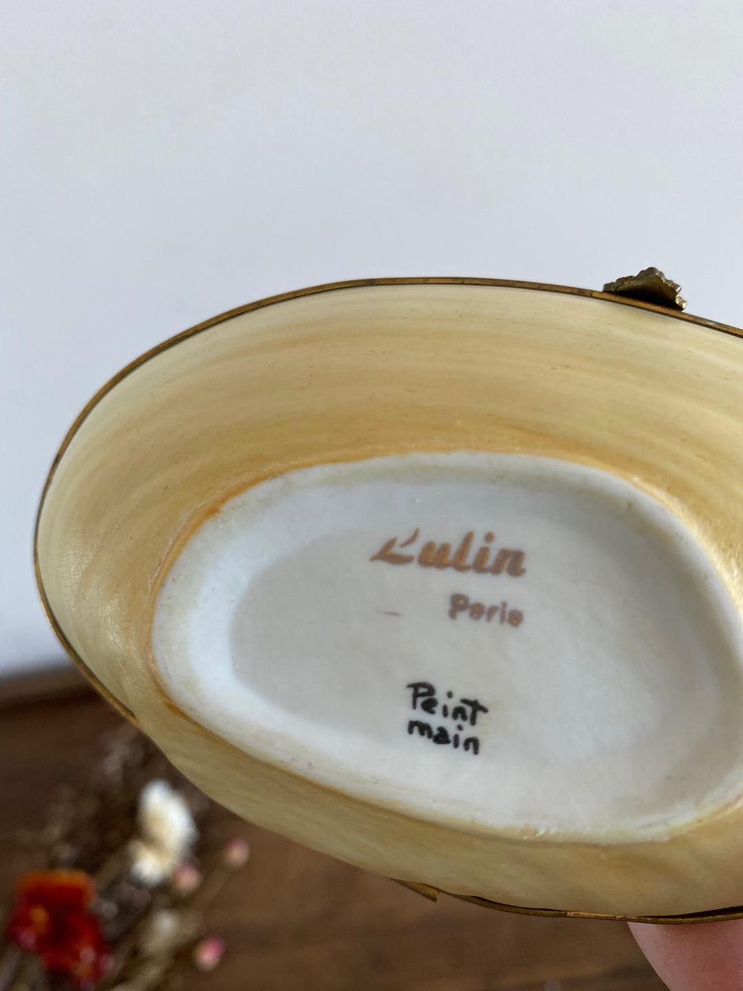 Ravissante petite boîte en forme de coquillage. Une création peinte à la main de la maison Lulin Paris.