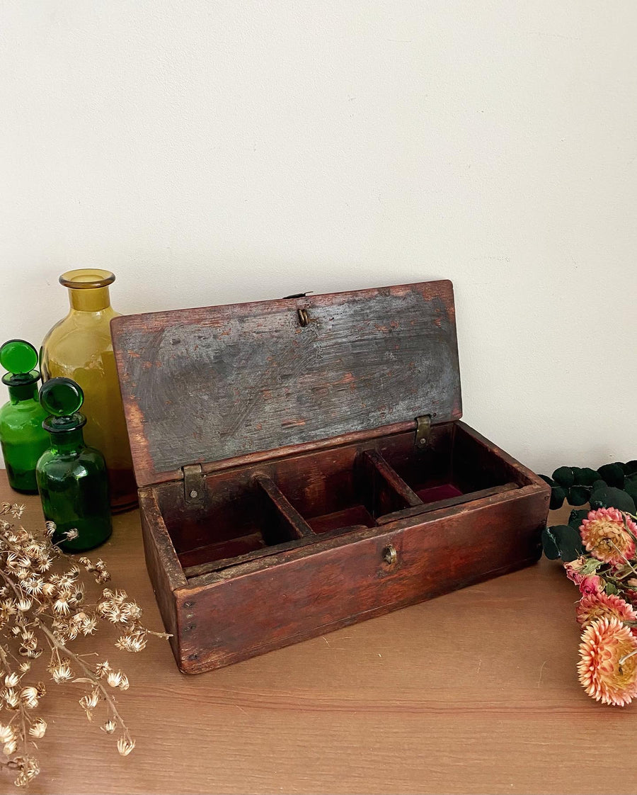 Jolie boîte en bois faite main, très ancienne et parfaitement imparfaite comme on les aime