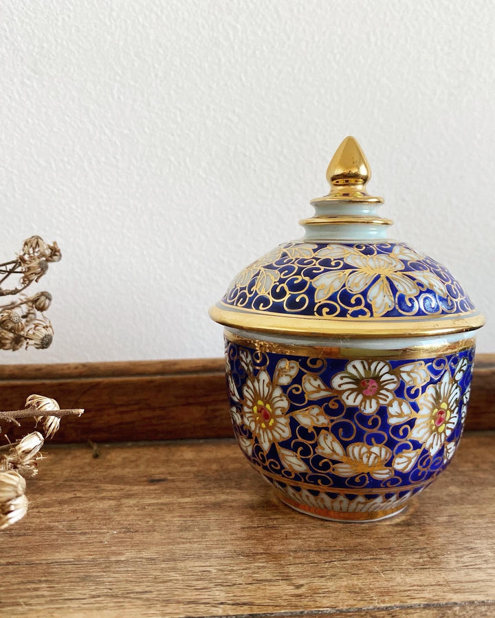 Adorable petite boîte en céramique bleu marine et or - parfaite pour y mettre de jolis petits trésors;