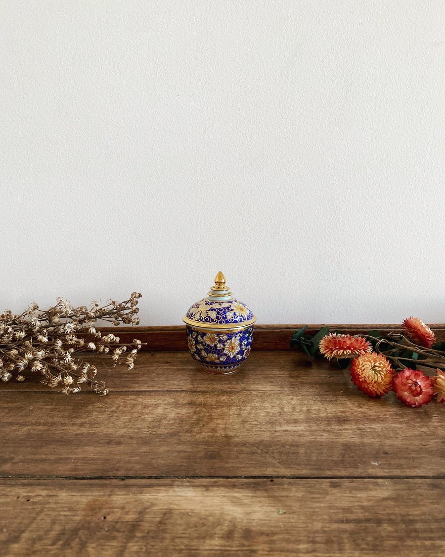 Petite pot en céramique bleu marine et or
