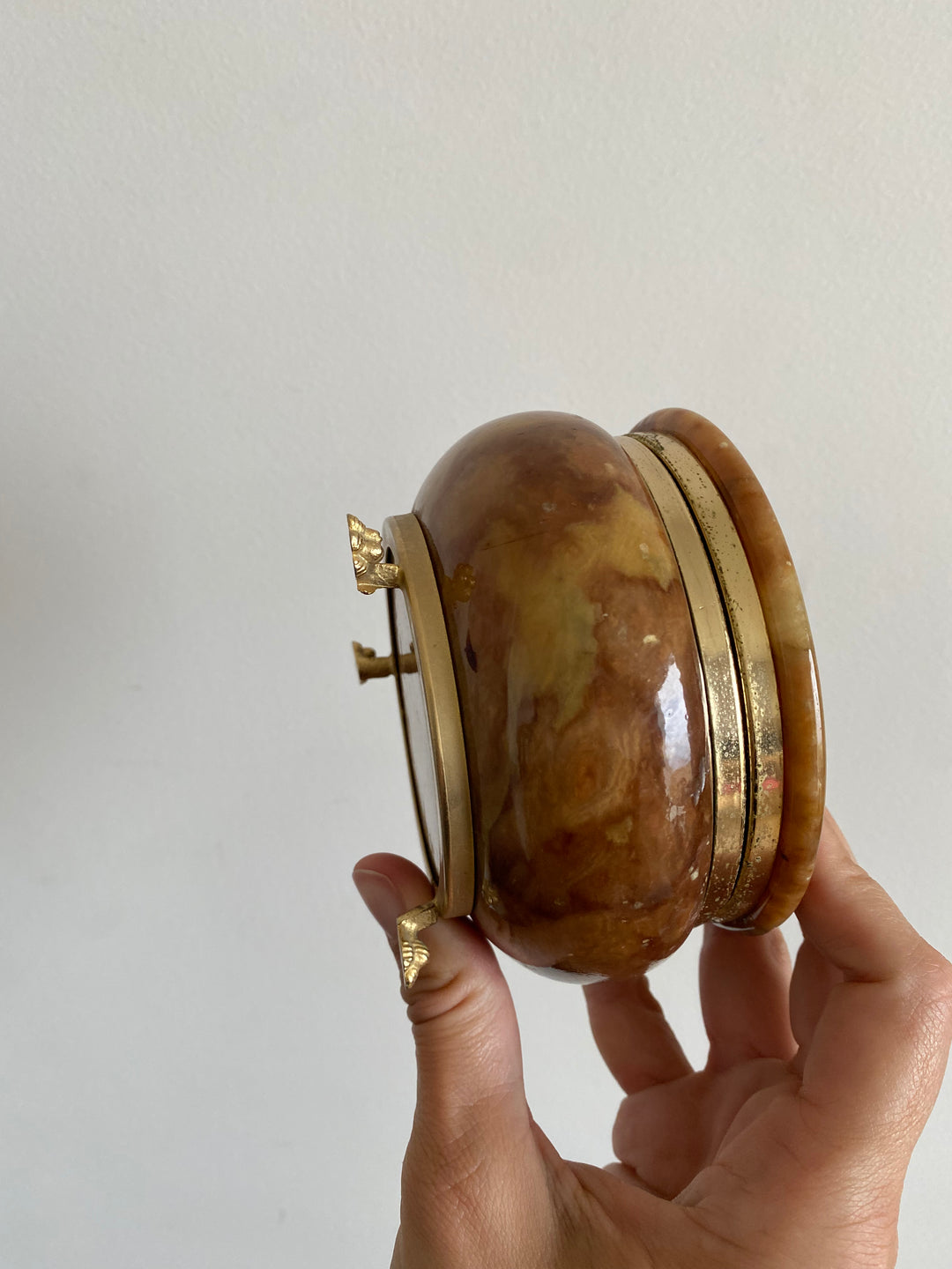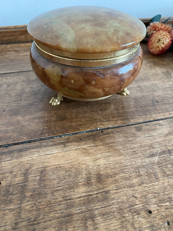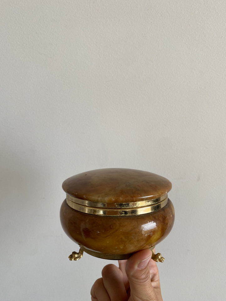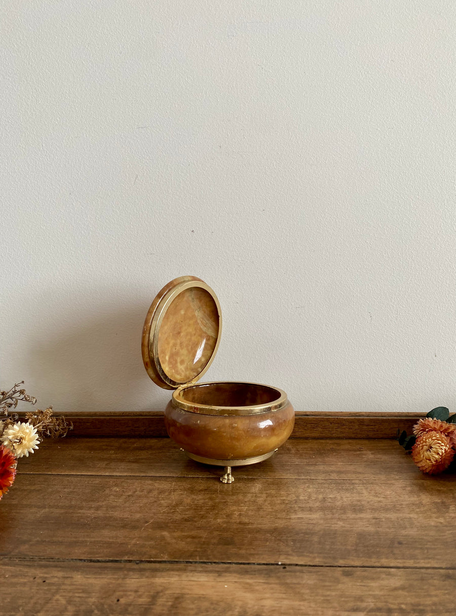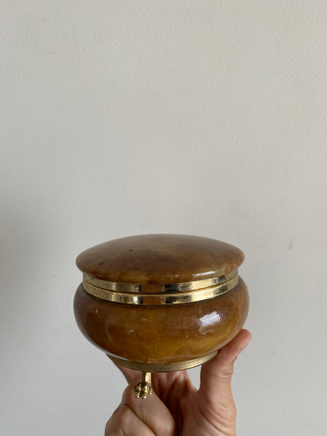 Joli pilulier en onyx marron glacé sur pieds armature dorée