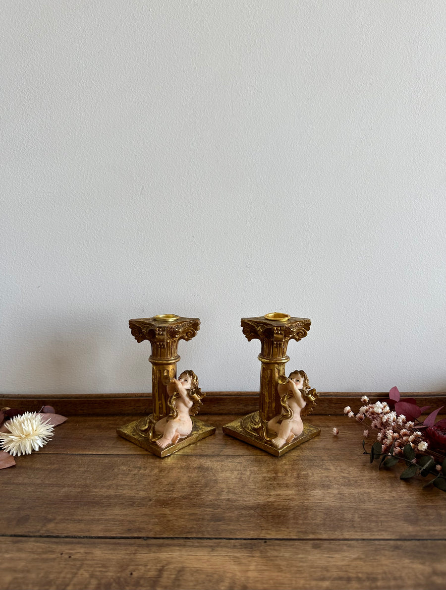 Bougeoirs rococo cherubins musiciens