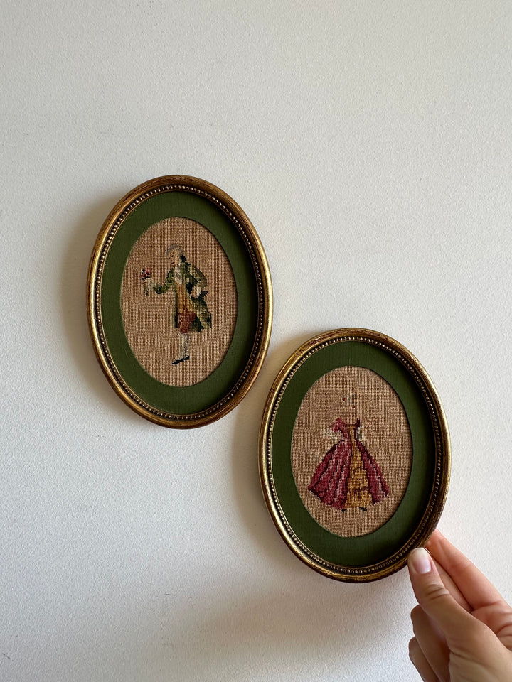Joli lot de deux petites broderies du XIX ème, ré-encadrées dans les années 50. Vendues séparément.
